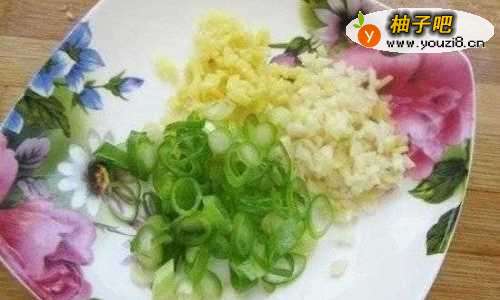 2辣椒、葱切圈、姜蒜切末,胡萝卜、黑木耳泡发切丝;