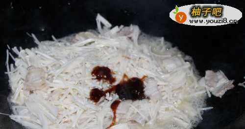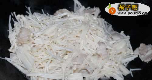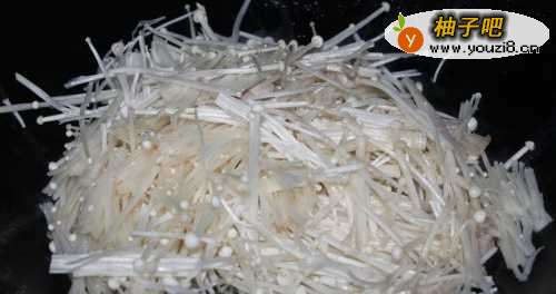 4放入金针菇翻炒。