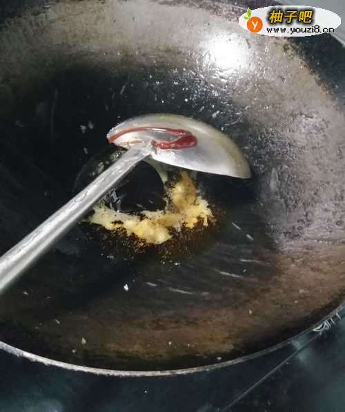 2开火倒菜油,倒入少量蚝油,放入切好的大蒜,煸炒出香味