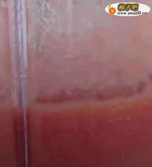 把番茄用开水烫一下去皮,切成小块放入料理机打成汁。见下图
