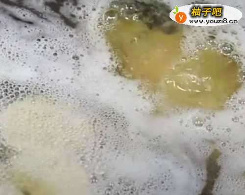 5锅内烧油,油热5成时,把小圆片放锅内炸。见下图