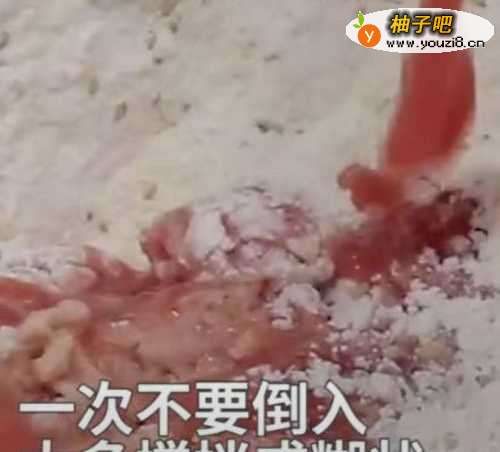 2准备面粉100克加入10克白糖。倒入白芝麻30克,再打入一个鸡蛋。用筷子边搅拌边倒入番茄计。一讽不要倒入太多,搅拌成糊状。见下图