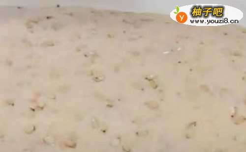 3把芝麻在面团中揉匀,揉成面团就可以了,盖上小盆饧10分钟。