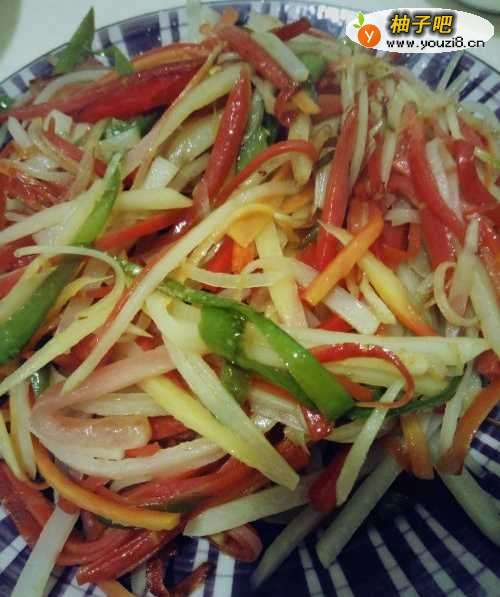 怎样炒酸辣味青椒土豆胡萝卜丝