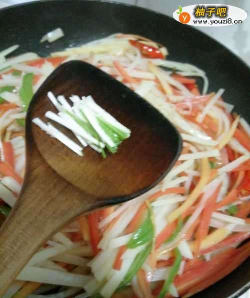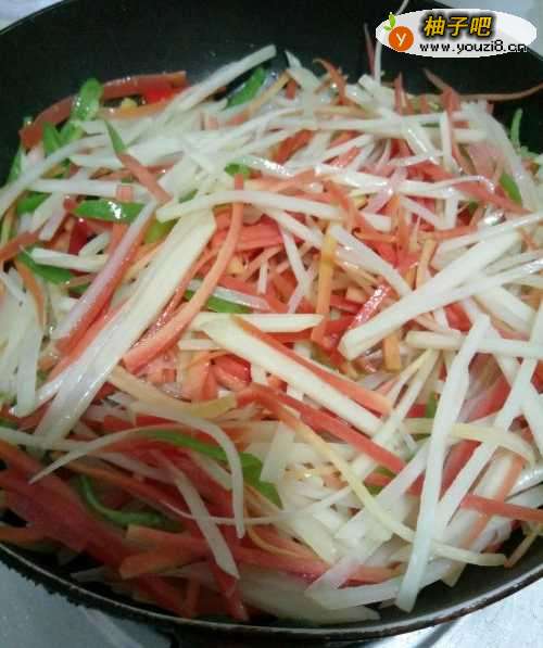 7再放入土豆丝 胡萝卜丝 青椒丝
