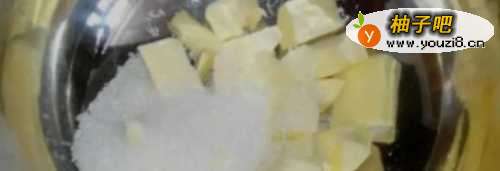 2等黄油软化后加入白糖30克,搅拌均匀,无需打发。