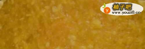 7黄油融化后加入苹果丁儿,再放入柠檬汁5克,45克糖。继续加热至苹果变软糖融化,关火晾凉。同时上下火180度预热烤箱。