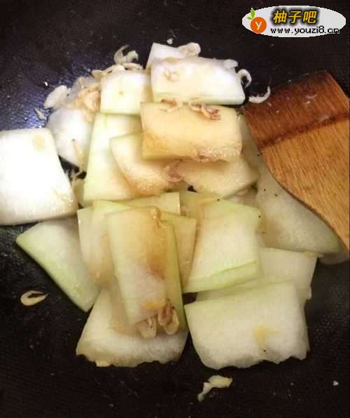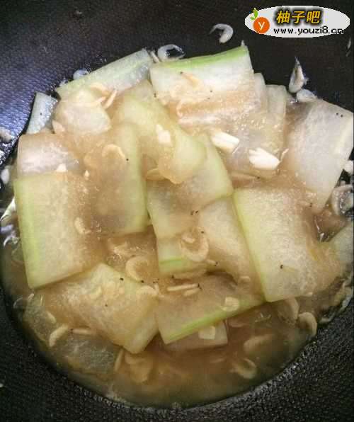 9尝尝咸淡味道,喜欢鸡精味精的可以放点。味道还不错就可以装盘了。家常菜虾皮烧冬瓜就完成了。