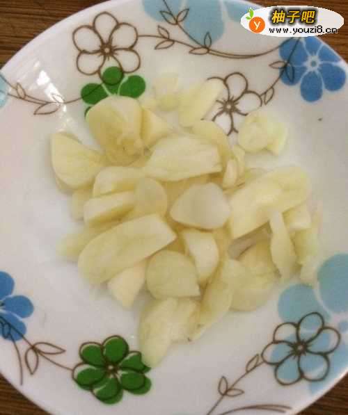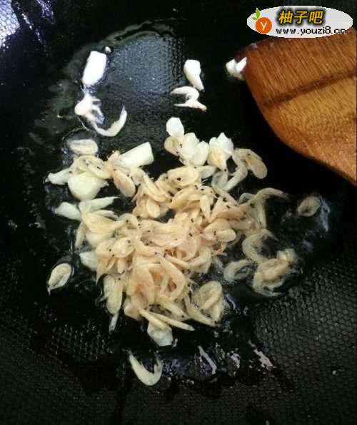 4锅里放油烧热,放大蒜爆香后放虾皮翻炒。