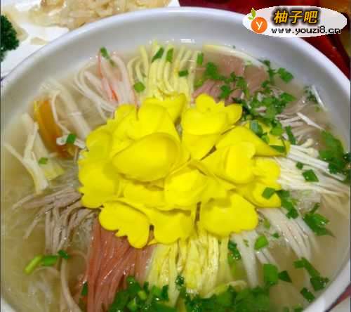 4第四,洛阳燕菜又称牡丹燕菜,是河南洛阳独具风格的传统名菜。属豫菜系。主料有白萝卜、海参、 鱿鱼、鸡肉