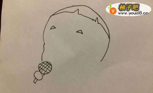 3接下来画出两个三角的眉毛和一个圆画上小个子。是一个话筒哦。