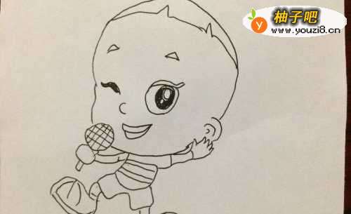 5然后画好嘴巴手臂和上身,继续画出衣服上的条纹。