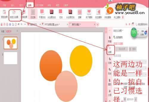 新建幻灯片:新建点+号快速新建,然后把鼠标移至“动画-自定义动画“开始动画各部份的设置。右边栏是自定义动画的快捷栏和右上方的自定义动画栏功能是一样的。(如图)