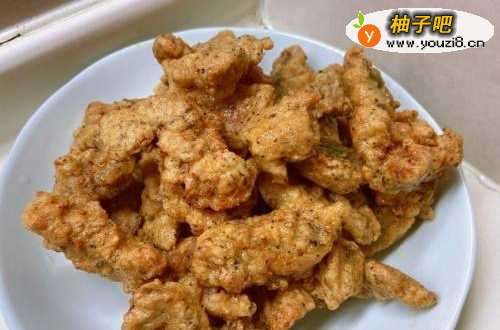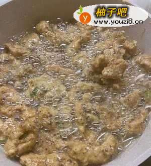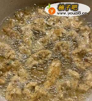 9复炸:把晾凉的里脊再次下入油锅,炸至金黄,这一步是为了让小酥肉更酥脆,并且逼出里脊的油