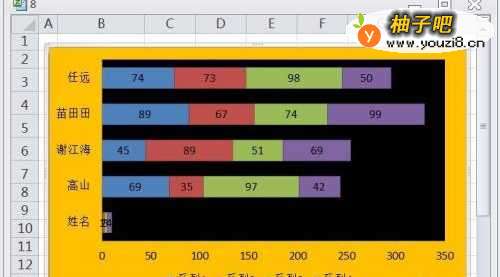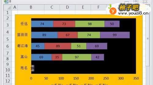 5点击【布局9】后,即可让堆积条形图的图表布局显示布局9的效果,如下图所示。