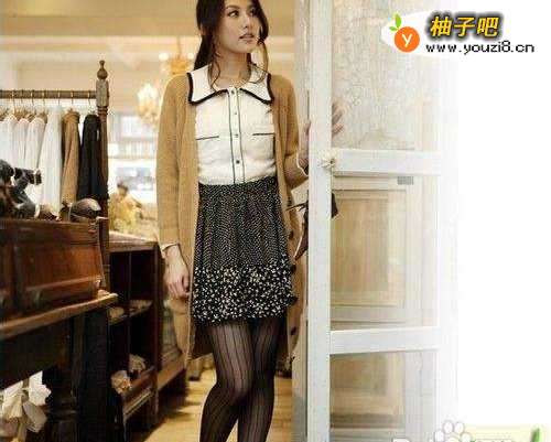 驼色针织:蝴蝶领上衣配上短裙,浓浓的姑娘味,即使宽松外搭也挡不住它的魅力,驼色针织 最百搭且添优雅。