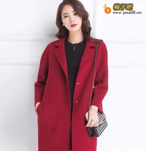 搭配三:黑色长款毛呢裙黑色长款毛呢裙也是一款非常实用又好搭配衣服的裙子,不管是搭配卡其色、酒红色还是图中这款紫红色大衣都是非常好看的。