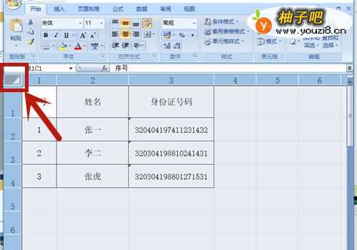 2、选中整个工作表: