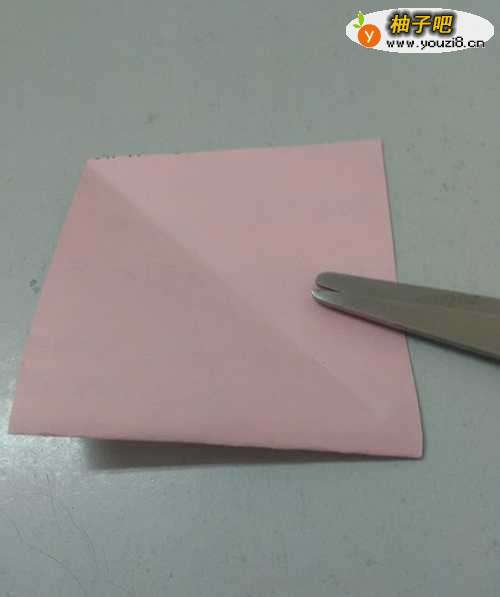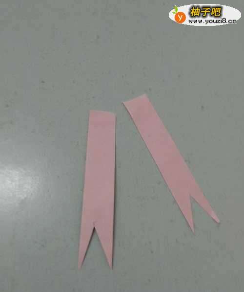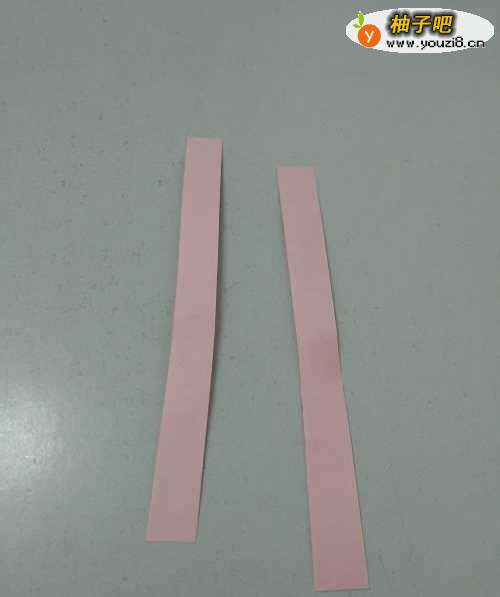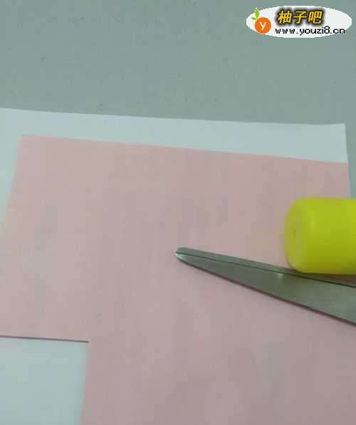 2先从彩纸上裁下一个长方形,这个长方形是由两个正方形组成的。