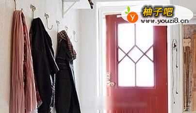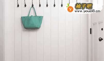 2再就是以纯白小清新风格来设计客厅进门玄关,家具上面挂上一些挂钩,放上带有颜色的包包,鞋子放在地板上,这样给人一种很干净的感觉。