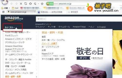 开启日本亚马逊的网址,点击目录,选择你要的商品的分类