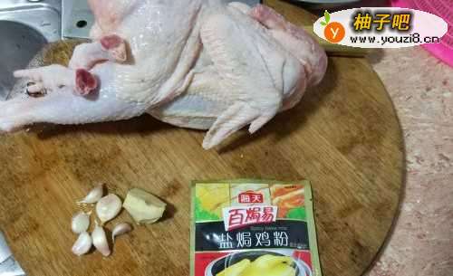 首先,准备好食材 。买鸡的的话,只要把鸡的内脏都挖出去就行了 。盐焗鸡料,商场都有得卖 。