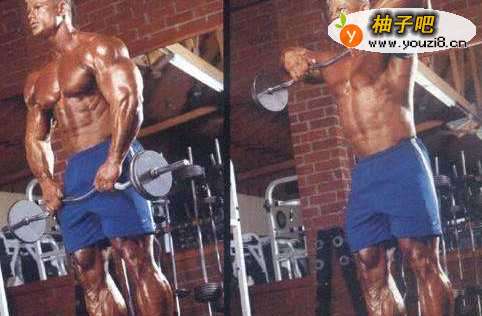5若要增大抗力,还可抱一杠铃片在胸前。俯卧垫上:俯卧在罗马椅上,上体前屈,两足固定,两手抱头或肩负杠铃。俯卧球上。