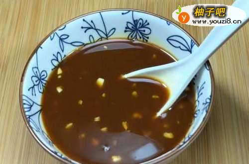 3调个料汁,把准备好的蒜瓣,拍碎,切成蒜末放入碗中,然后放入2勺生抽,1勺老抽,一勺蚝油,少许盐,最后放入一些白糖调味搅拌均匀备用