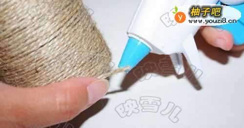 3取一根麻绳,在绳头处粘上热熔胶绕