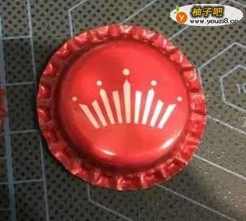 3皮块的大致轮廓出来后,再对皮块内部进行处理,皮块内部的圆圈的大小要放得下瓶盖的圈圈哦,不宜过小或者过大,可慢慢进行调整。