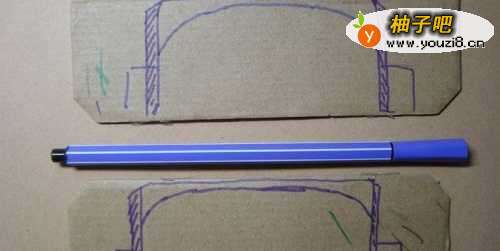 接着,用紫色彩色笔在硬纸板上画出足球的球门,如下图所示。