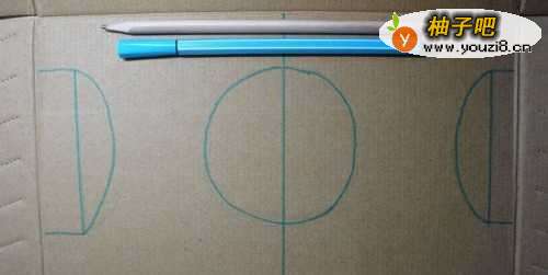 然后,用蓝彩色笔在硬纸板上画出球门和中场的图形,如下图所示。