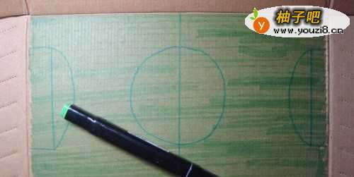 接着,用绿色马克笔在硬纸板上画出足球场上的绿草地,要均匀的涂上颜色,这样好看些,如下图所示。