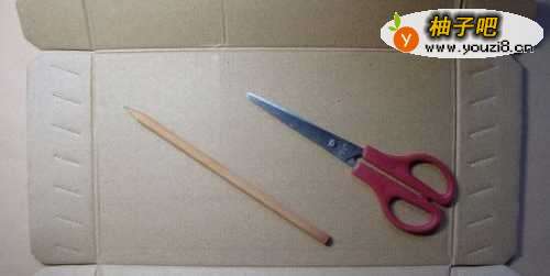 接着,在硬纸板上用铅笔画出纸盒子的图形,并用剪刀剪出来,如下图所示。注意纸盒图形不要画大了。