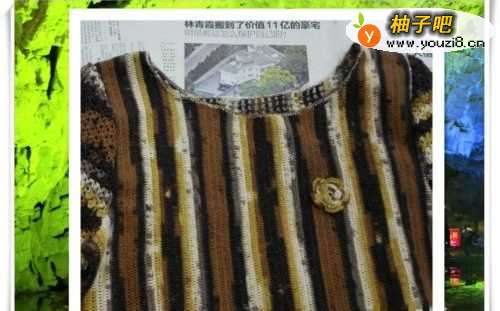 在编织世界里,从来都是彩色一片。小编看到咖啡色长段染的棉线又爱不释手,果断买下,经过几周时间的加工,成就了一件民族风短袖套衫。因为自己喜欢,所以想分享给喜欢手工的所有朋友。衣服规格根据穿着者的身体规格来确认,所以不作描述。图片和过程分列如下。