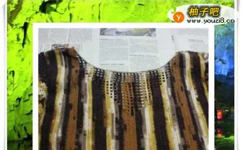 后背和前胸部分完成后,腰部两侧缝合。下摆部分改成横钩了,所以线条也成横形的花样了。花样同样是一行长针与一行短针交替进行。注意的是,下摆要隔几行放几针,这样能与臀部形状相贴合。而且穿起来才会更舒服,更美观看。