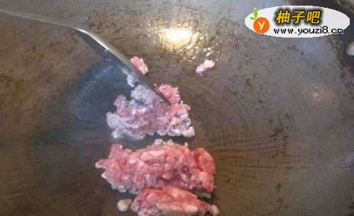 3热油,猪绞肉下锅