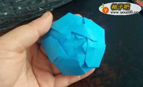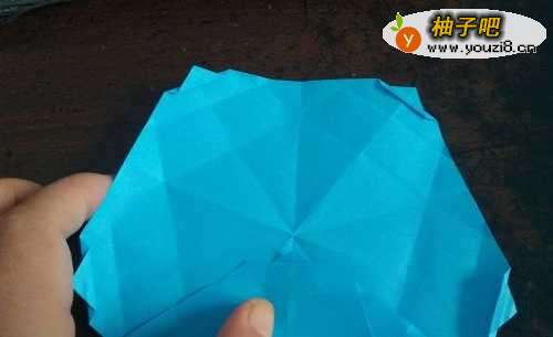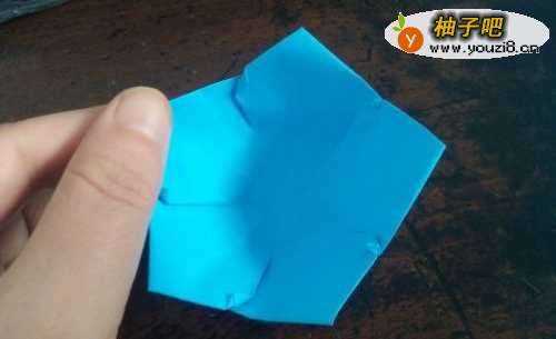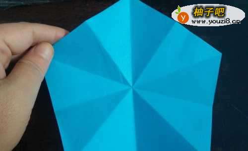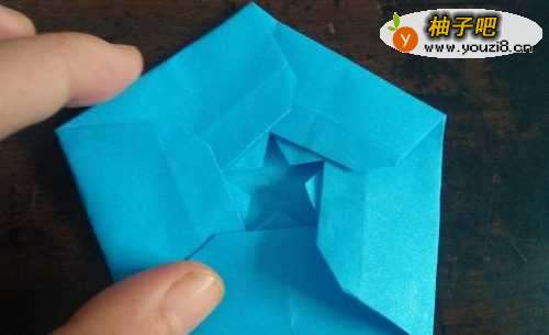 5把最后一条边折到第一道边里边,如图一。然后把每条边的中间向内对折,如图二。