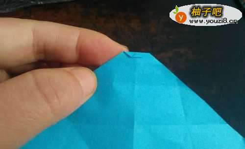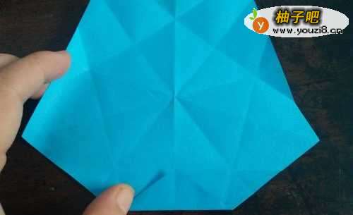 6折好后,把里边的角向着另一个方向翻折。翻过来看盾牌就折好了,如图二。
