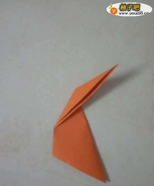 6把第5步完成后,那我们就开始折长颈鹿的头部了,如下图