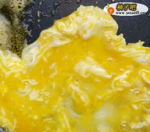 3然后,锅中倒入少许食用油,独伐杰两个鸡蛋打成蛋液倒入锅中略煎盛出。