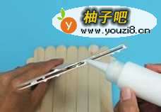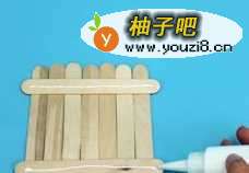 用雪糕棍做船底:7根雪糕棍叠在一起,上面用乳胶垂直地粘2根雪糕棍,然后再粘上第三层。