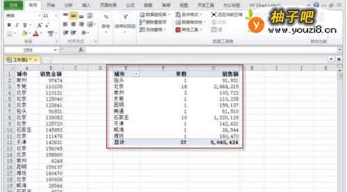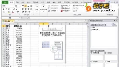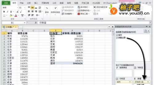 将“城市”字段拖动到【行标签】