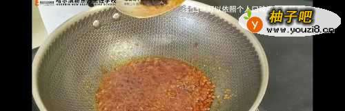 7锅中放入油,放入香辣酱,加辣椒酱(能依照个人口味进行调整),加入郫县豆瓣酱(能依照个人口味进行调整),进行炒香