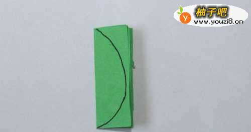 9将绿色的长方形纸对折两次。