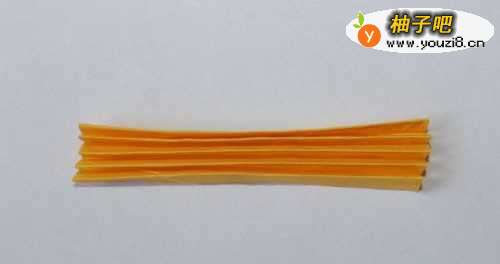 边长7cm*7cm的黄色纸3张、边长4cm*4cm的橙色纸1张、绿色纸2张
