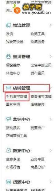 1.开启淘宝卖家中心,在店铺管理下找到,手机店铺管理。