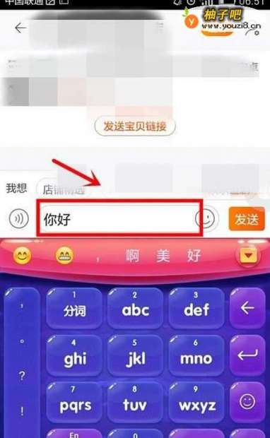 7当我们编辑好后,只需点击文本框右侧的“发送”即可,接下来就是等待商家给我们答复了。