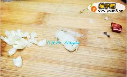 5准备少许生姜、蒜头、辣椒干,分别处理一下,加入刚才的油锅中,爆香一会。