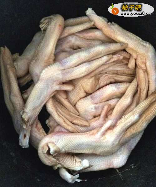 鸭爪剥掉外皮,去掉鸭指甲,清洗干净备用;